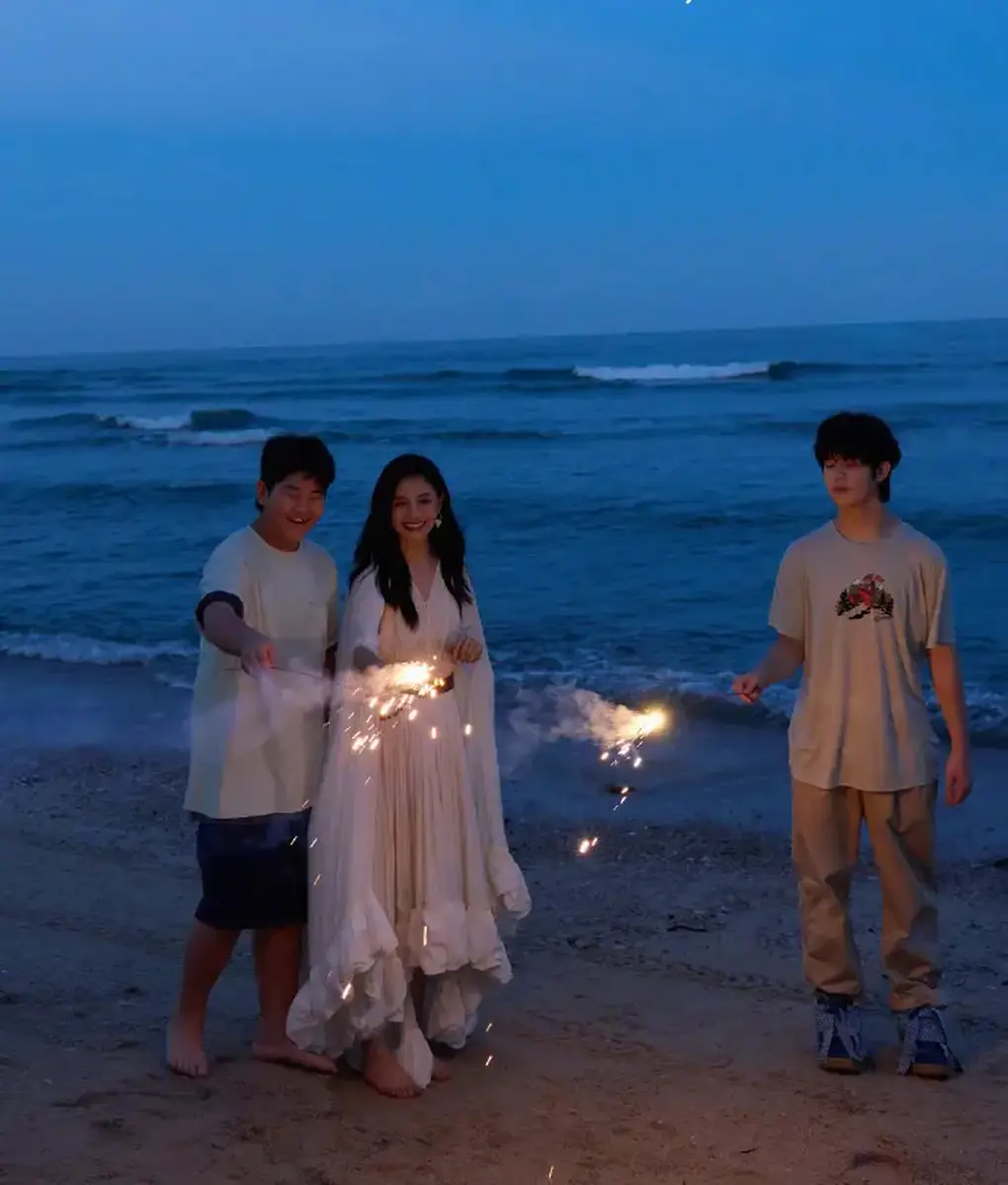 胡可帶安吉小魚兒拍封面大片 海邊放煙花溫馨又治愈