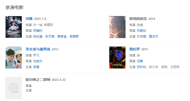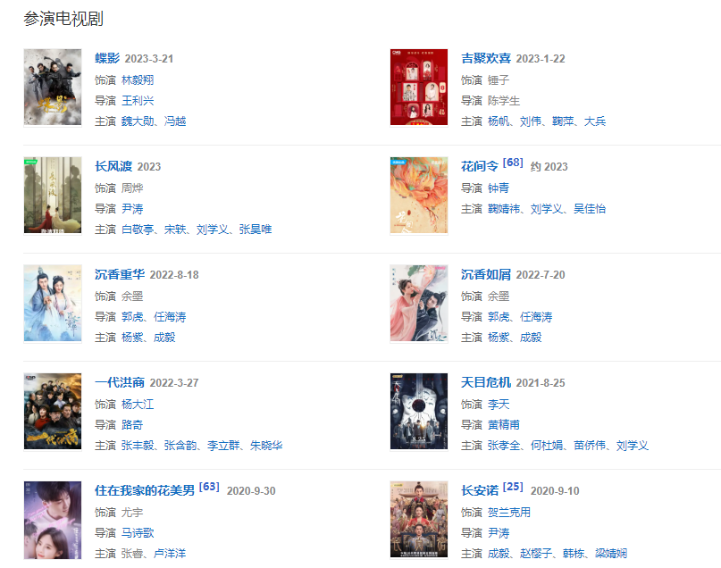 代表作品:新還珠格格、花非花霧非霧、愛的階梯、仙劍云之凡、獨步天下、隋唐英雄、明天你好、河豚