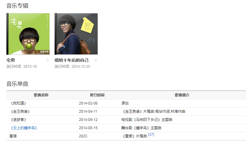 代表作品:唱給十年后的自己