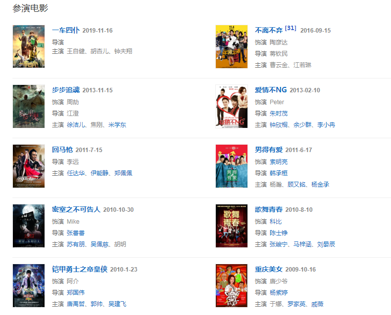 2019年10月29日,主演的都市喜劇《一車四仆》宣布定檔11月16日登陸全國院線。