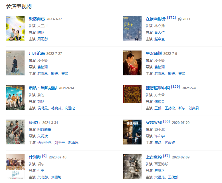 代表作品:旋風(fēng)少女、瑯琊榜、長歌行、穿越火線、仙劍客棧、影、沙海、盛夏未來、家有外星人、淘氣包馬小跳