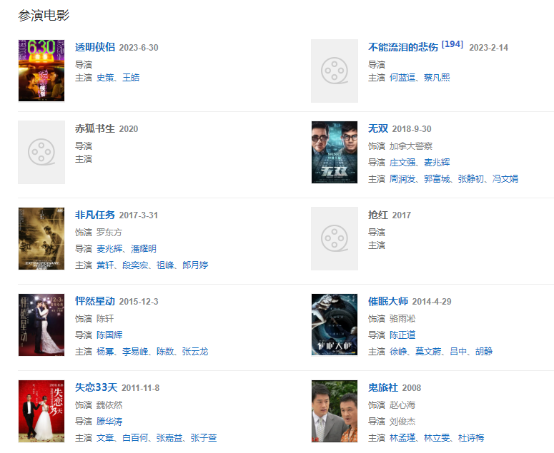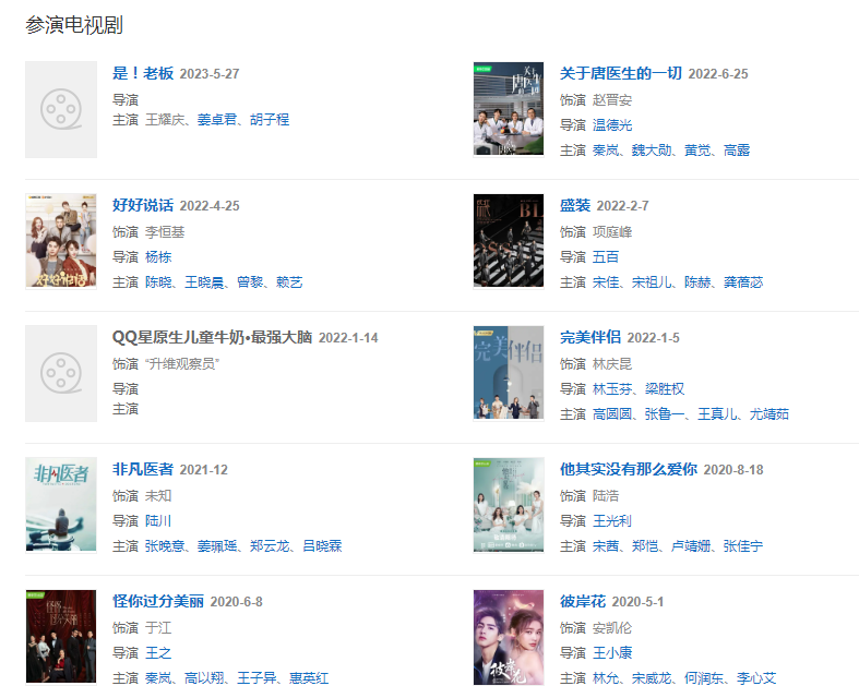 代表作品:失戀33天、浮沉、小兒難養(yǎng)、小爸爸、好先生、畢業(yè)歌、職場是個(gè)技術(shù)活、創(chuàng)業(yè)時(shí)代、決勝法庭