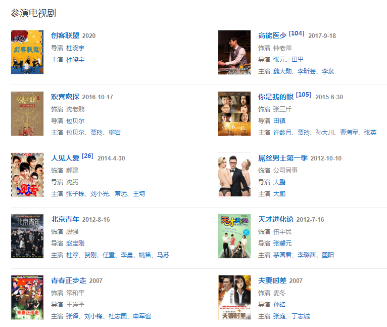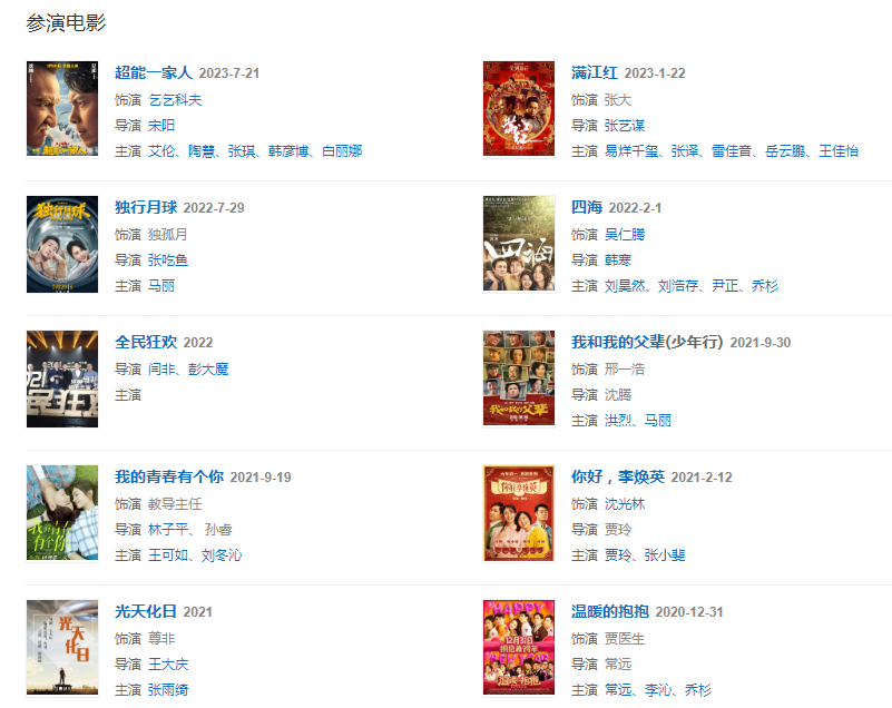 代表作品:今天的幸福、扶不扶、夏洛特?zé)馈⑽骱缡惺赘?、羞羞的鐵拳、你好,李煥英、瘋狂的外星人、飛馳人生、四海、全民狂歡