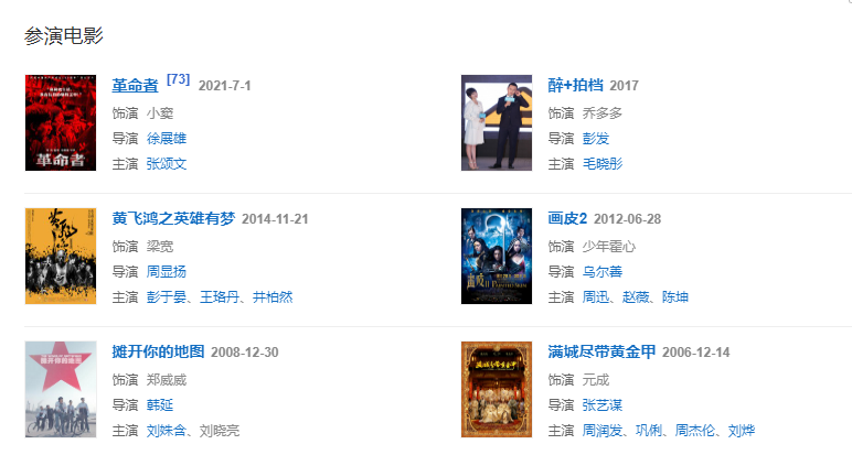 2006年,因拍攝張藝謀執(zhí)導(dǎo)的古裝宮廷情感電影《滿(mǎn)城盡帶黃金甲》而步入演藝圈 。
