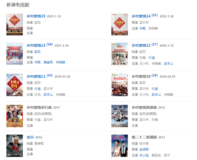 2011年5月,在農(nóng)村輕喜劇《鄉(xiāng)村愛情交響曲》中飾演“趙四”。