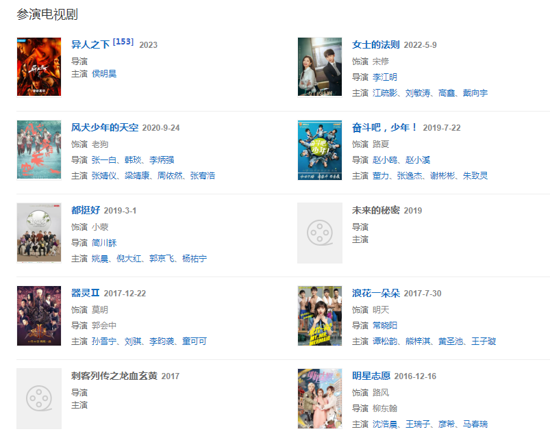 代表作品:快把我哥帶走、風(fēng)犬少年的天空、大象席地而坐、奮斗吧,少年!、閃光少女、都挺好、奪冠、一點(diǎn)就到家、刺客列傳