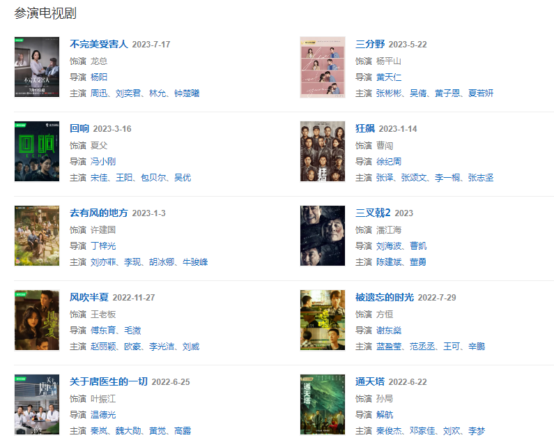 2016年,與TFBOYS、薛之謙、李小璐合作主演青春校園劇《我們的少年時代》,在劇中飾演尹柯爸爸;同年,出演萬盛華執(zhí)導(dǎo)的重大革命題材電視劇《長征大會師》,在劇中飾演國民黨高級官員,蔣介石首席智囊楊永泰一角。;同年,參演電視劇《最好的遇見》,飾演童建國。