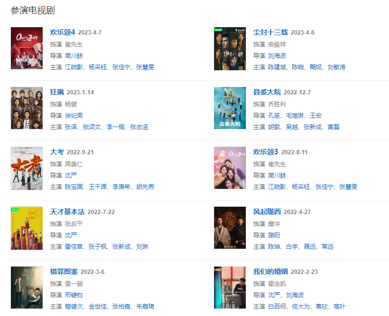 2020年5月31日主演的公安刑偵劇《三叉戟》在江蘇衛(wèi)視、浙江衛(wèi)視首播,并在愛奇藝、優(yōu)酷、騰訊視頻同步播出。12月13日參演的檢察法治劇《巡回檢察組》在湖南衛(wèi)視首播。12月28日參演的年代情感劇《流金歲月》在中央電視臺電視劇頻道播出,并在愛奇藝同步播出。