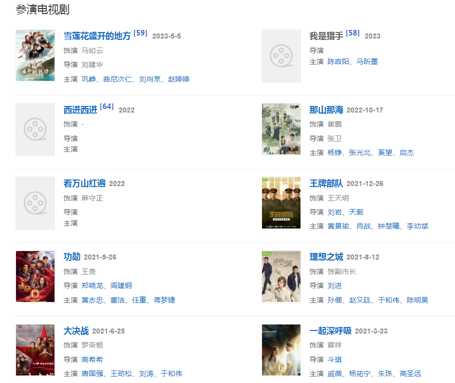 代表作品:紫荊勛章、大雪無(wú)痕、亮劍、沉默與謊言、錯(cuò)愛(ài)2、國(guó)歌