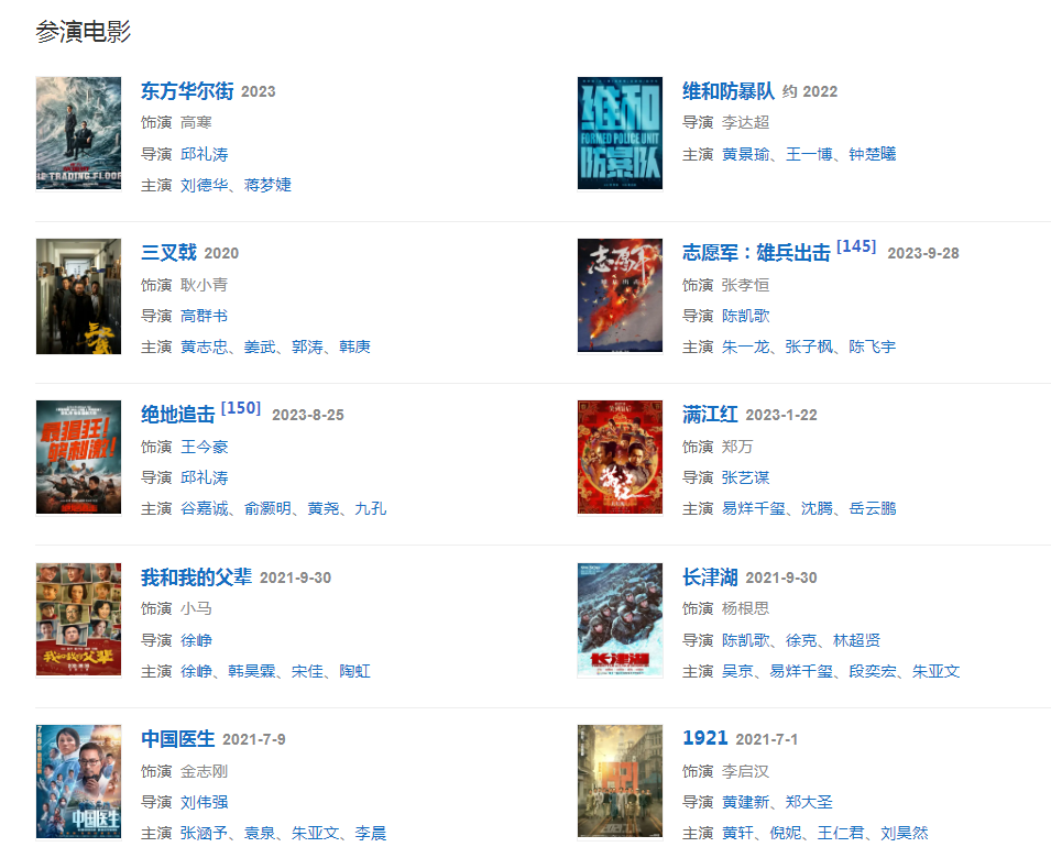2020年主演的電影《八佰》上映;11月28日,提名第33屆中國電影金雞獎最佳男配角。
