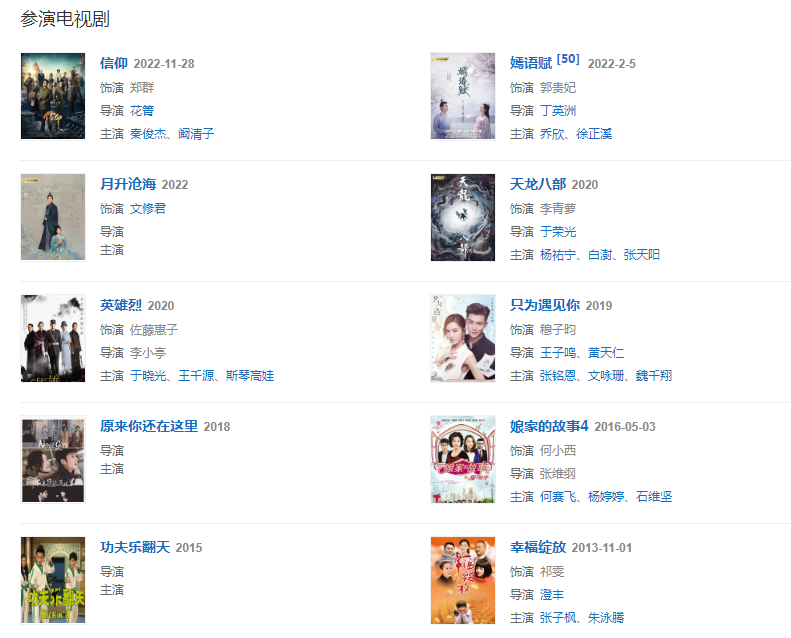 代表作品:西游記后傳、大丫鬟、只為遇見你、娘家的故事、順娘、誰知女人心