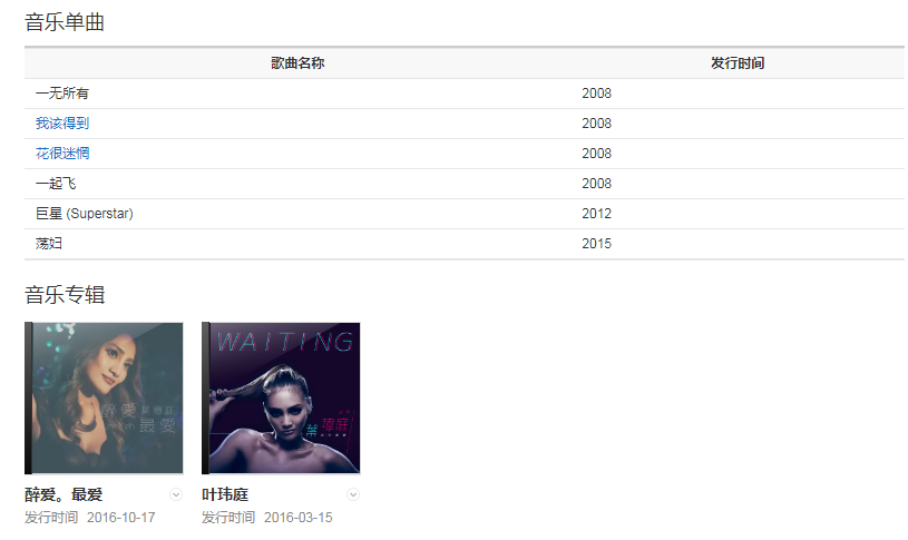 2016年,推出首張個(gè)人同名EP專輯《葉瑋庭》;同年,她主演的劇情電影《只要我長大》首映 [2] ,她憑借本片獲得了第18屆臺(tái)北電影獎(jiǎng)最佳新演員獎(jiǎng) ;10月17日,推出第2張個(gè)人EP專輯《醉愛。最愛》。