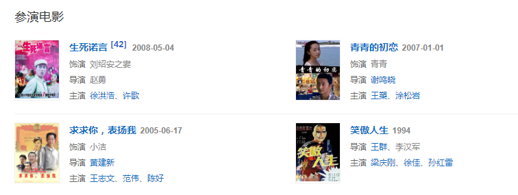 2004年,在佟大為、孫鋰華主演的都市愛(ài)情劇《第一次的親密接觸》中飾演白玫瑰;同年,在楊世光執(zhí)導(dǎo)的商業(yè)情感劇《浮塵》中飾演普源的女兒施小雅;同年,參演王志文、范偉主演的喜劇電影《求求你,表?yè)P(yáng)我》。