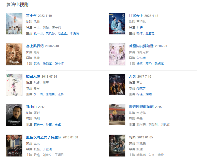 2022年4月18日,參演的古裝言情劇《且試天下》播出,在劇中飾演玉樂琳。