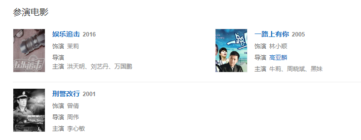 2005年,參演高亞麟執(zhí)導(dǎo)的喜劇電影《一路上有你》,從而開始演藝事業(yè)。