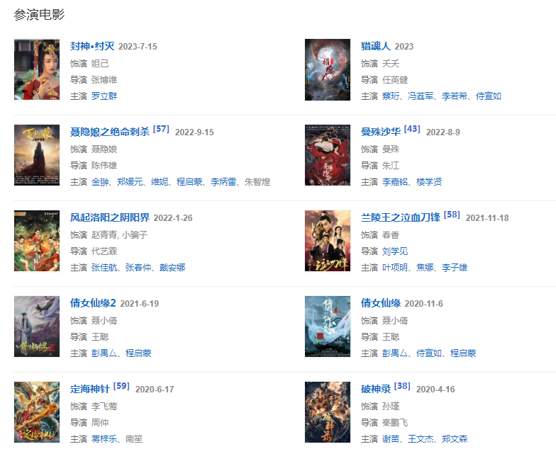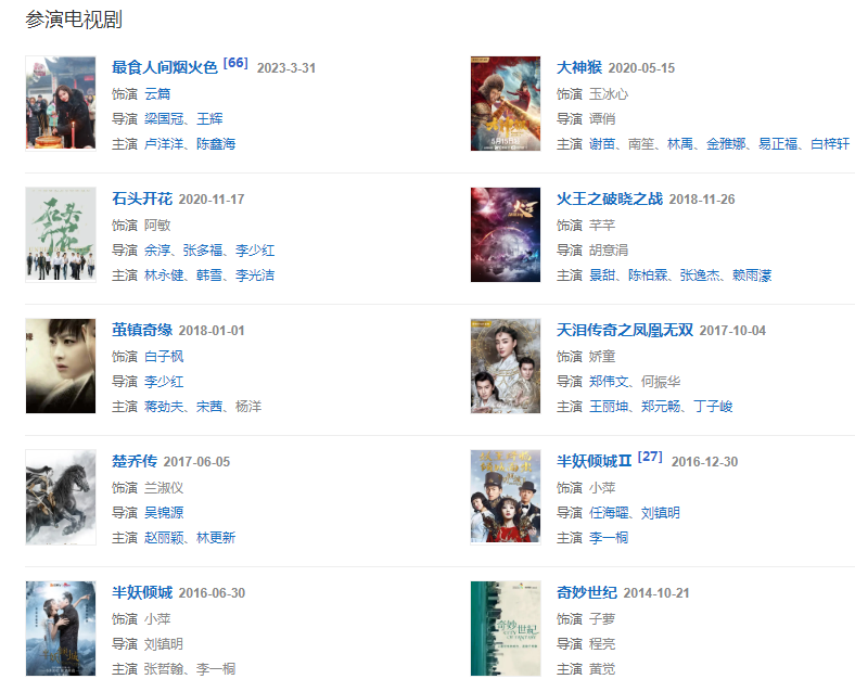 代表作品:楚喬傳、火王之破曉之戰(zhàn)、大夢西游4伏妖記、雙世青蛇、辛棄疾1162
