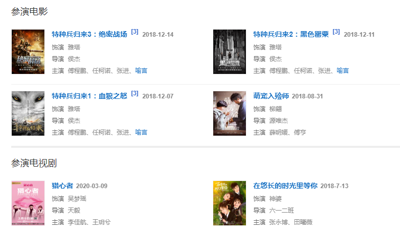 代表作品:特種兵歸來、蠢貨、薔薇之巔、斯芬克斯X謎、Give Me All Night、暮色、Bad Girl