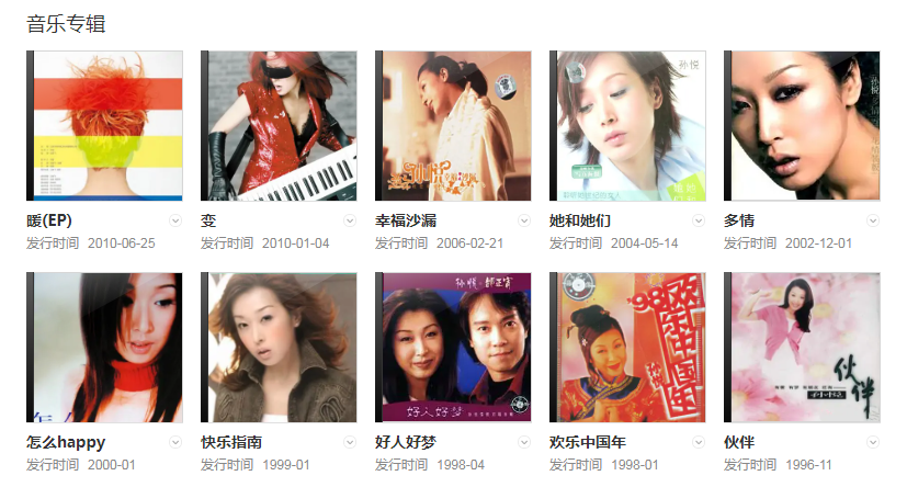 代表作品:我心飛翔、祝你平安、魅力無限、好人好夢、大家一起來、幸??燔?、快樂指南、歡樂中國年、怎么happy、哭泣的百合花
