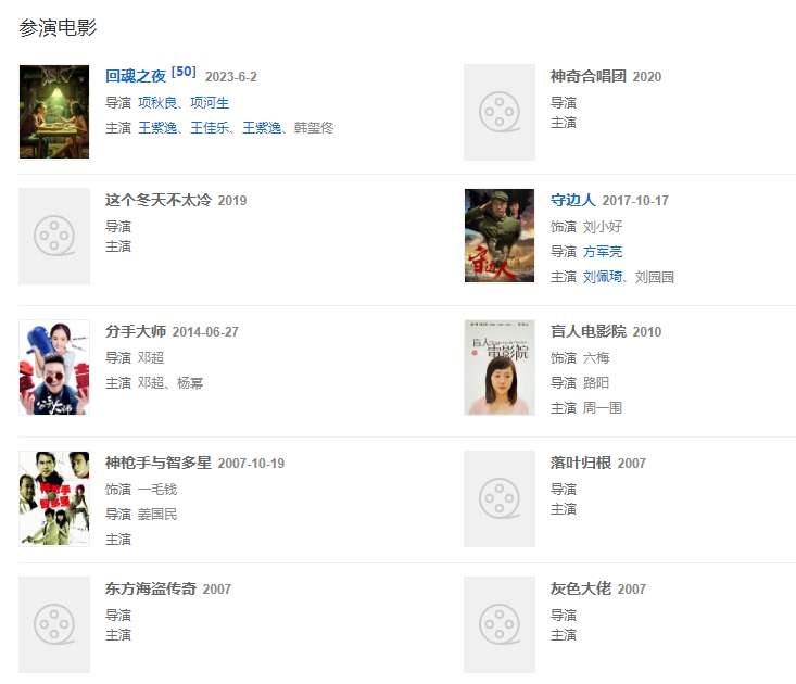 代表作品:不要和陌生人說(shuō)話、鐵齒銅牙紀(jì)曉嵐3,大唐歌飛、少年康熙、盲人電影院、情滿四合院