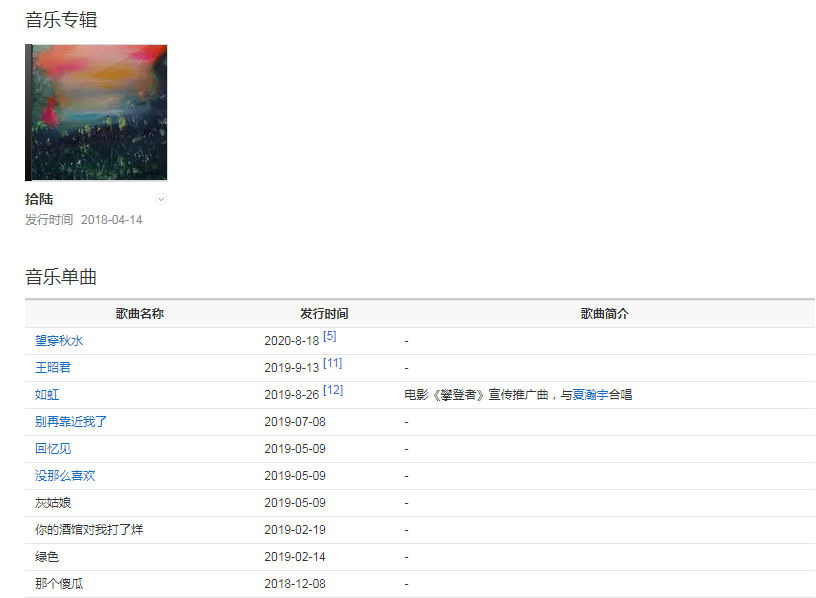 2018年4月,發(fā)行首張專輯《拾陸》。