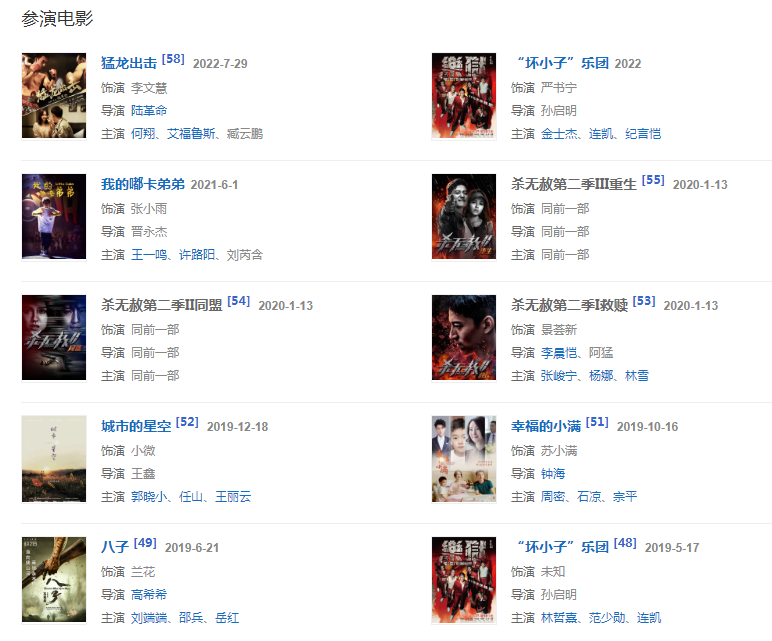 代表作品:黃金大劫案、紅樓夢(mèng)、我要當(dāng)空姐、全家福、別叫我兄弟、重耳傳