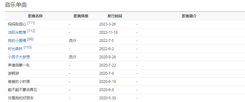 代表作品:寶貝寶貝、《明日歌》、《你笑起來真好看》、聽我說謝謝你