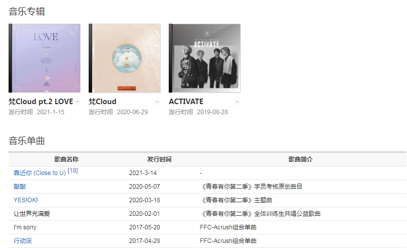 代表作品:行動(dòng)派、ACTIVATE、梵Cloud、青春有你第二季