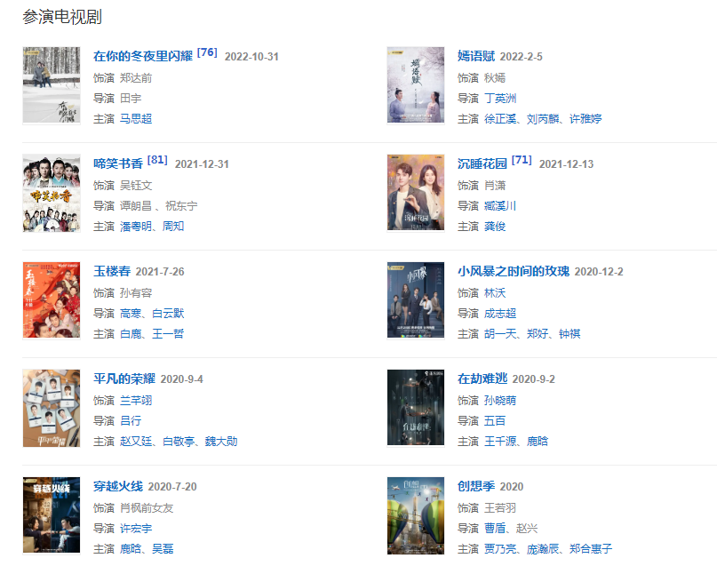 2017年5月,主演的都市情感劇《歡樂頌2》播出;8月,主演后青春時(shí)代都市勵(lì)志劇《趁我們還年輕》。