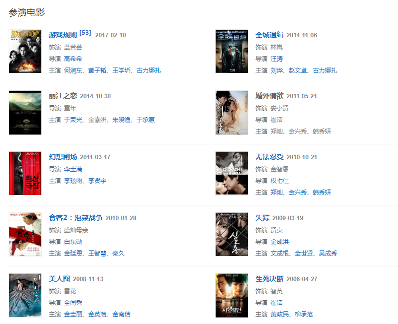 2017年2月,與何潤東、古力娜扎等合作主演動作片《游戲規(guī)則》 ;7月,與于曉光共同出演SBS綜藝節(jié)目《同床異夢2-你是我的命運》 ;12月,與于曉光合作演唱歌曲《是你啊》 。
