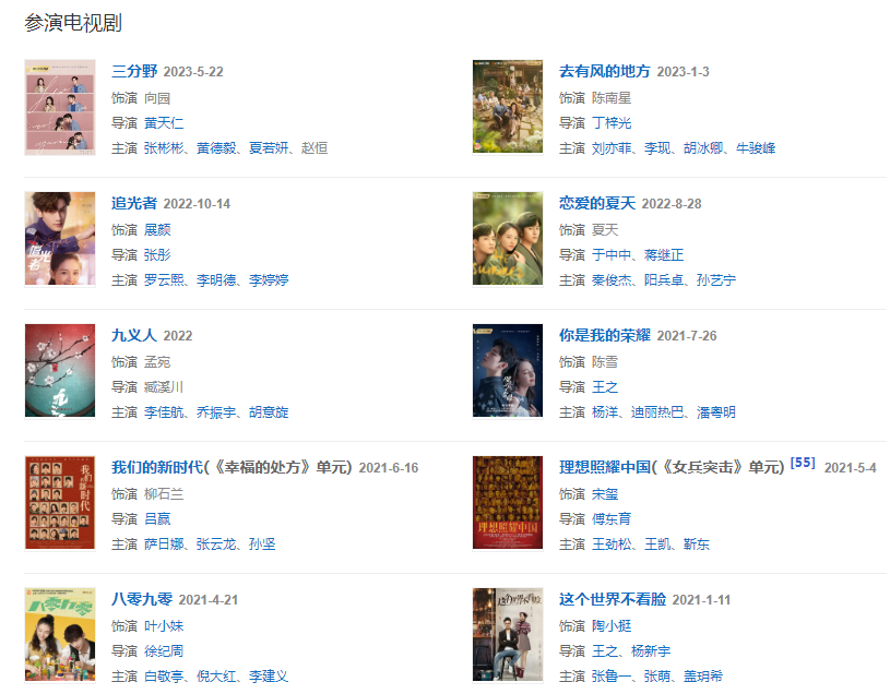 2021年,主演的都市劇《八零九零》開播 ;同年,領(lǐng)銜主演的都市勵志劇《追光者》開機(jī) 。