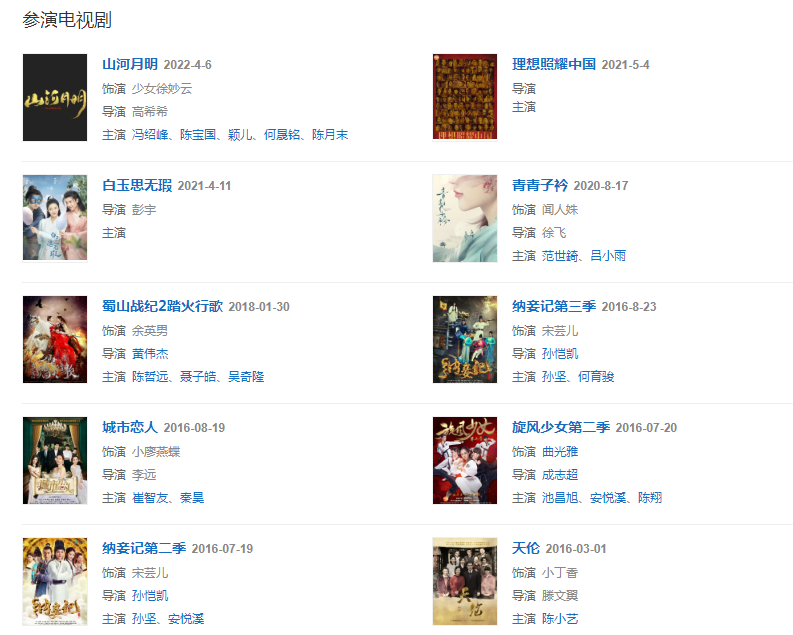 2018年,主演的武俠劇《蜀山戰(zhàn)紀2踏火行歌》在浙江衛(wèi)視播出。