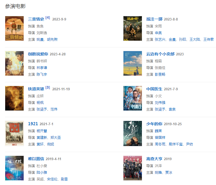 代表作品:少年的你、山河令、中國醫(yī)生