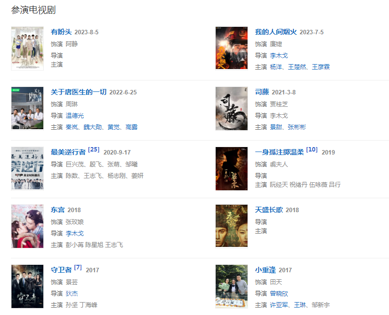 代表作品:守衛(wèi)者、天涯明月刀、武媚娘傳奇、楊門虎將、刀鋒1937、婚后30年、大宅門