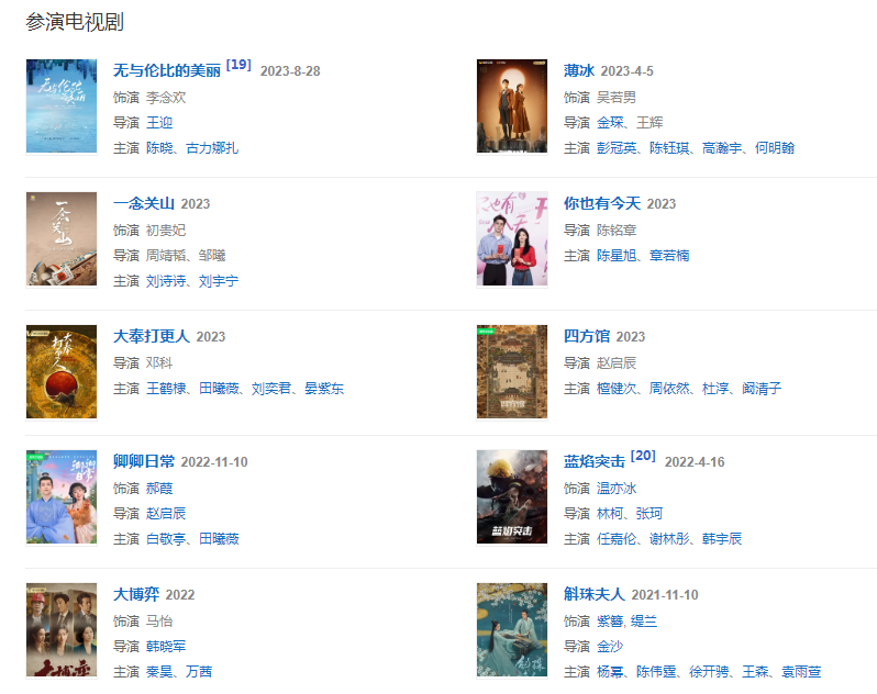代表作品:如懿傳、斛珠夫人、小別離、青春斗、愛在星空下、讀心、藍焰突擊