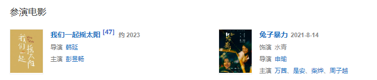 2019年6月,參演都市情感劇情片《兔子暴力》 ;