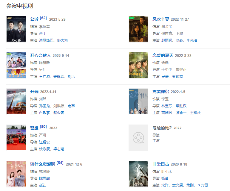 2022年1月5日,參演的電視劇《完美伴侶》播出 ;1月11日,參演的電視劇《開(kāi)端》播出;5月24日,主演的電影《兄弟同體》播出; 8月28日,出演的都市愛(ài)情網(wǎng)劇《戀愛(ài)的夏天》播出;9月14日,主演的職場(chǎng)輕喜劇《開(kāi)心合伙人》在愛(ài)奇藝播出;11月1日,參演的網(wǎng)劇《危險(xiǎn)的她2》正式官宣 ;11月27日,出演的時(shí)代群像闖劇《風(fēng)吹半夏》播出。