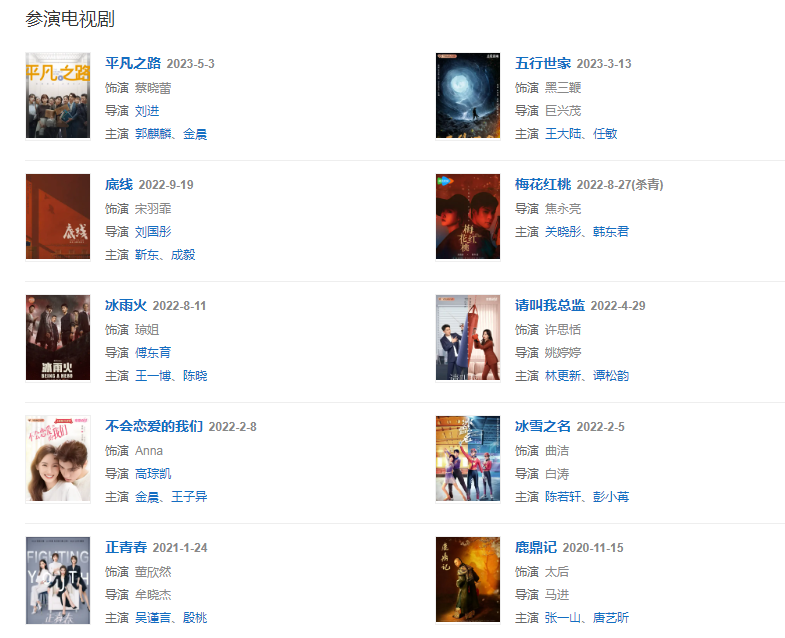 2023年3月13日,主演的民國(guó)奇幻武俠劇《五行世家》播出,在劇中飾演凌厲霸氣卻又深受情傷的“御姐”黑三鞭;5月3日,出演的都市職場(chǎng)輕喜劇《平凡之路》播出。7月,主演的電視劇《暗夜與黎明》首批陣容官宣。