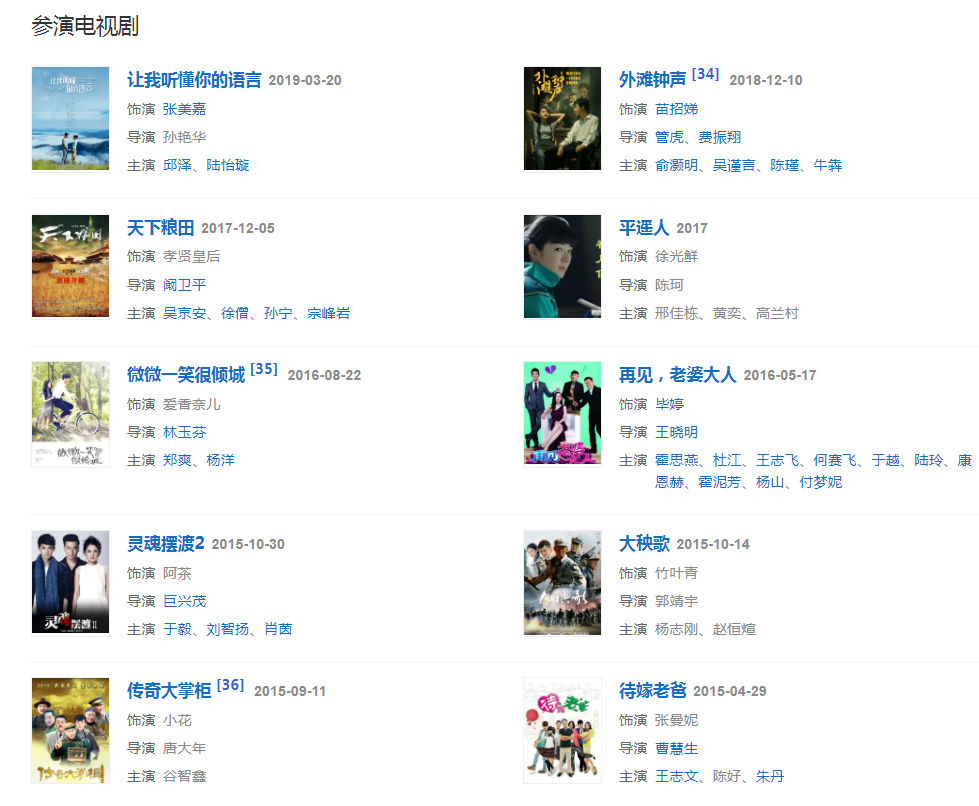 2003年開(kāi)始出演影視作品,在電視劇《激情燃燒的歲月2》飾演“肖清白”;