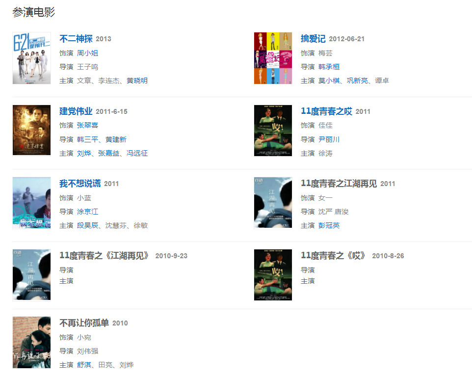 2010年出演網(wǎng)絡(luò)劇《11度青春》系列走紅 。