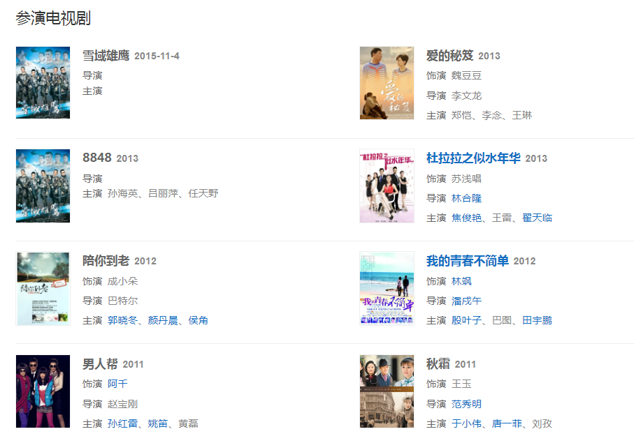 2011年趙寶剛導(dǎo)演又一熱播劇《男人幫》與實(shí)力派男演員孫紅雷搭檔,飾演同屋女孩“阿千” 。