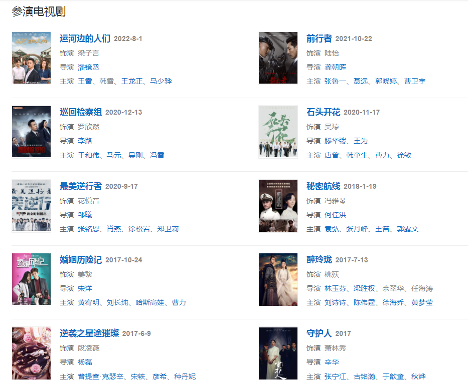 2020年10月9日,電影《驚天救援》宣布主演陣容,韓雪領(lǐng)銜主演。12月13日,主演的電視劇《巡回檢察組》播出。在劇中飾演羅欣然。