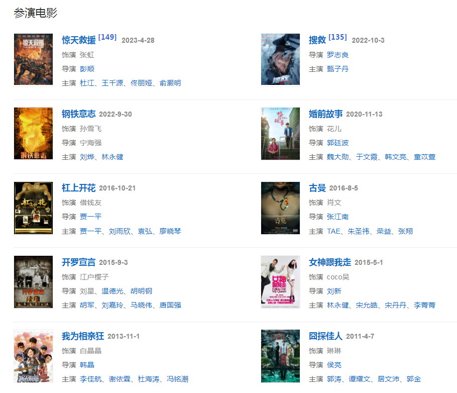 代表作品:錯(cuò)愛一生、淑女之家、偏偏愛上你、娛樂沒有圈、天外飛仙、北平往事、福星高照豬八戒、飄雪、想起、巡回檢察組