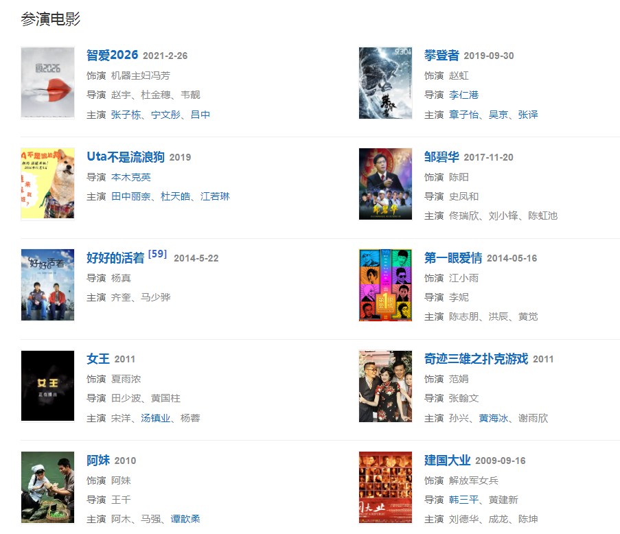 2021年2月26日,主演的科幻喜劇電影《智愛2026》上映。10月,參演的電視劇《突圍》播出,在劇中飾演童格華。