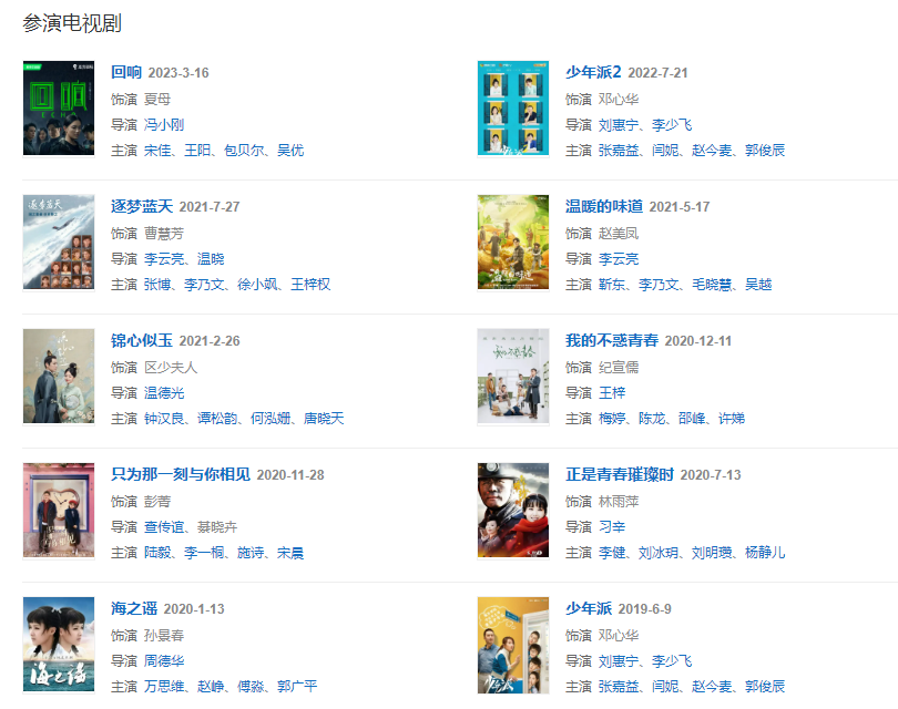 2021年,主演的當(dāng)代農(nóng)村劇《溫暖的味道》播出。7月27日,領(lǐng)銜主演的電視劇《逐夢藍(lán)天》開播 ;參演電視劇《錦心似玉》。