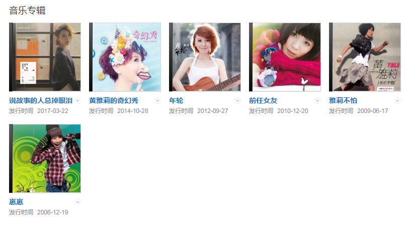 代表作品:蝴蝶泉邊、田園香、想你笑、前任女友、不一定快樂、我的光、換個地方住、戀愛絕句選、說故事的人總掉眼淚