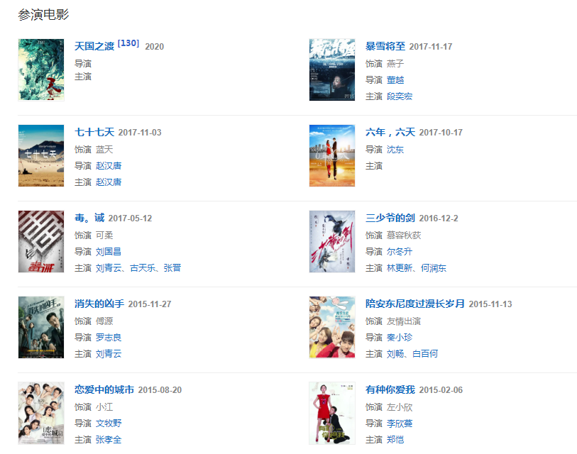 代表作品:我們無(wú)處安放的青春、南京!南京!、假裝情侶、消失的子彈、七十七天