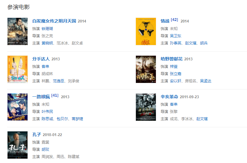 代表作品:丑女無敵、華麗一族、寶蓮燈前傳、給野獸獻(xiàn)花、孔子春秋、盤龍臥虎高山頂