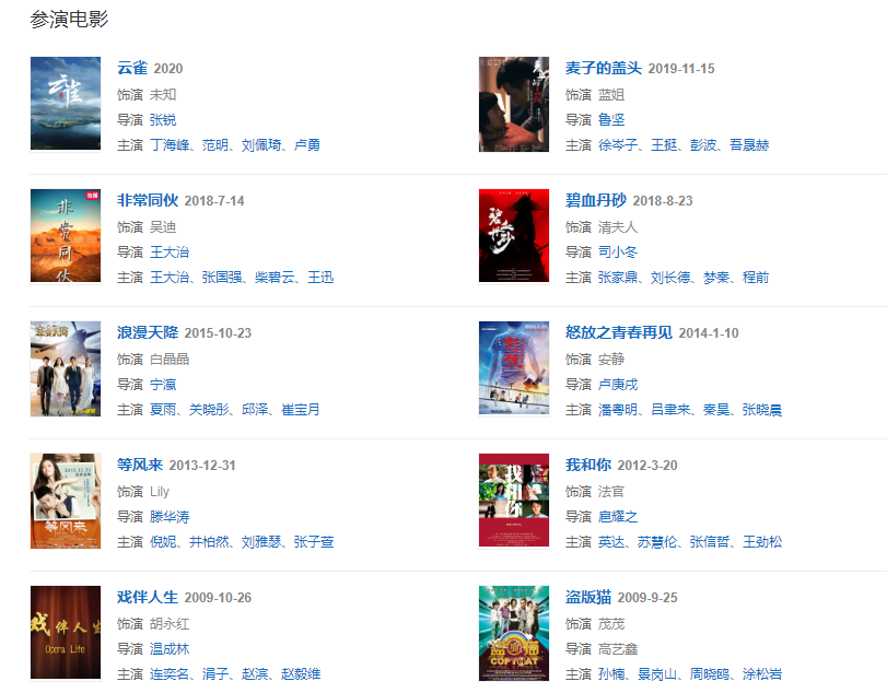 2013年在電影《怒放2013》中飾演安靜一角,同年在《等風(fēng)來》中飾演女主編Lily;