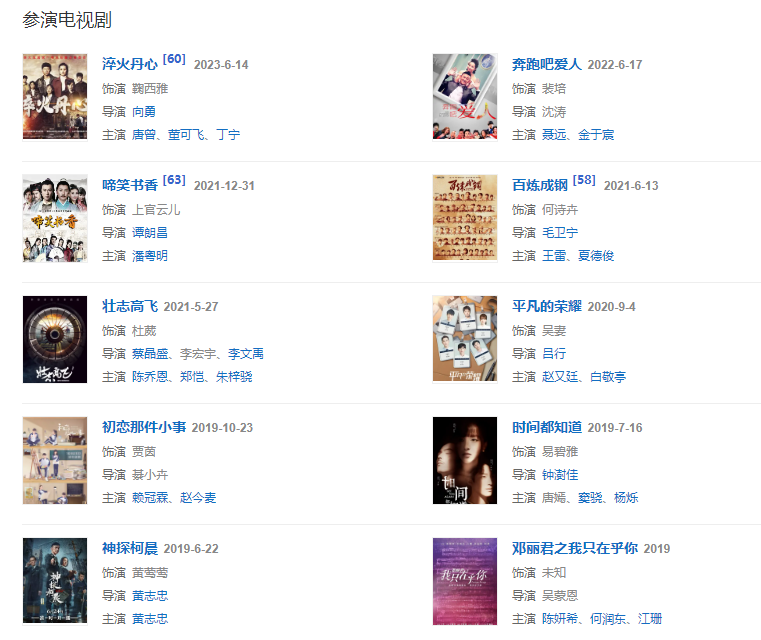代表作品:天外飛仙、雪在燒、新一剪梅、后宮、X女特工、真愛惹麻煩、平凡的世界、時(shí)間都知道