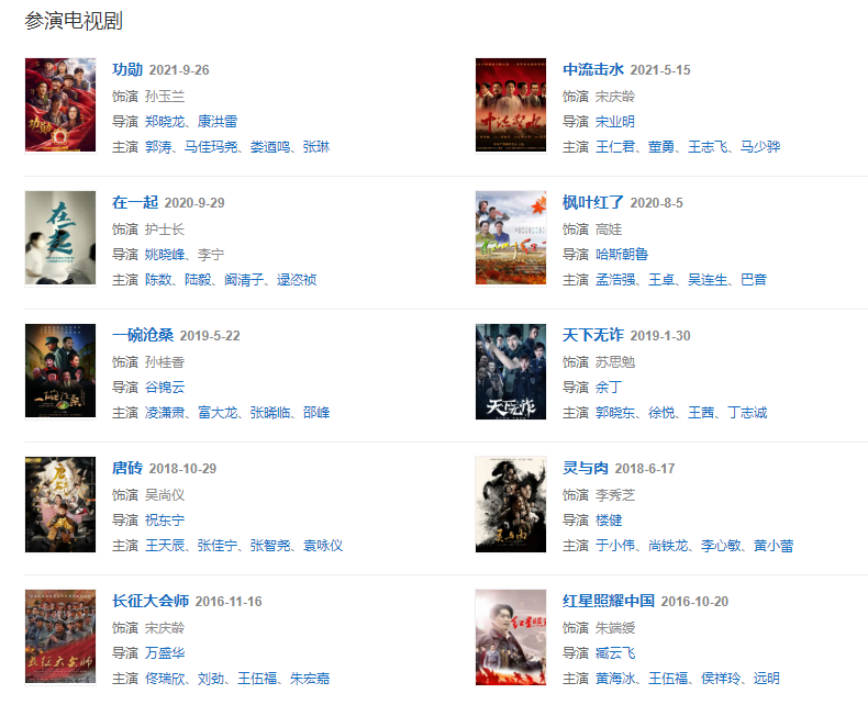 2016年4月,參演革命歷史劇《紅星照耀中國》,飾演上海地下黨政治局辦事處負責人朱端綬 [13] ;同年,參演電視劇《識汝不識丁》,飾演陳文帝的皇姐陳婧 。